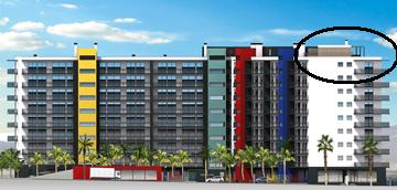 O referido imóvel, de modalidade T3, esta no último piso (8º andar) do edifício que íntegra o terraço, com uma piscina privada cujo acesso é exclusivo para o proprietário do apartamento em referência. A cozinha é toda ela revestida de mármore.