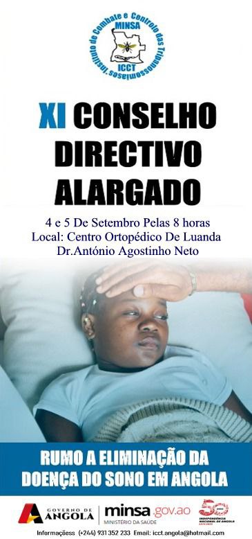 Luanda - O Instituto de Combate e Controlo das Tripanossomíases (ICCT) realiza nos dias 4 e 5 do próximo mês de Setembro, o XI conselho directivo alargado, em Luanda, com o foco na eliminação da tripanossomíases, também conhecida como “doença do sono”.
